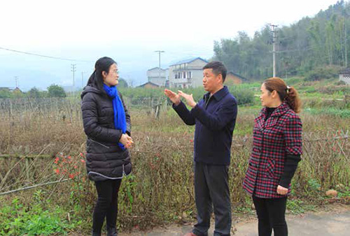 林善平代表(中)走訪回鄉(xiāng)的大學(xué)畢業(yè)生施穎( 左一),鼓勵她扎根山區(qū),為山區(qū)發(fā)展貢獻(xiàn)聰明才智。攝影/ 王爭