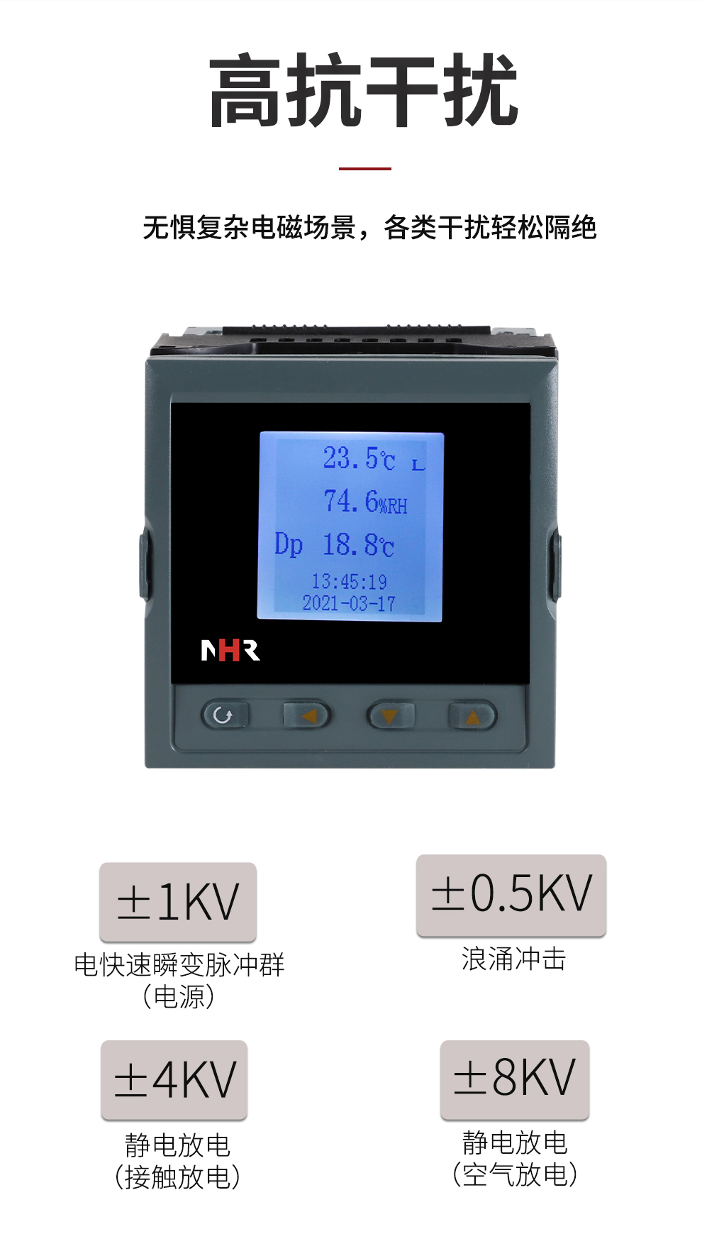 虹潤公司是專業(yè)生產(chǎn)環(huán)境監(jiān)測儀表的國家專精特新“小巨人”企業(yè)。生產(chǎn)的盤裝式溫濕度控制器,具有溫度、濕度、露點(diǎn)高精準(zhǔn)的測量,壁掛式結(jié)構(gòu),IP65防護(hù)穩(wěn)定性強(qiáng),高抗干擾,帶RS485/RS232通訊輸出等級等特點(diǎn)。產(chǎn)品獲得一種手持式低功耗溫濕度檢測儀、大屏幕溫濕度記錄儀等2項(xiàng)國家發(fā)明專利,主持起草物聯(lián)網(wǎng)智能溫度儀表通用技術(shù)條件、冷鏈溫度記錄儀等2項(xiàng)國家標(biāo)準(zhǔn),通信系統(tǒng)多通道數(shù)據(jù)采集控制終端規(guī)范軍用標(biāo)準(zhǔn),以及現(xiàn)場設(shè)備集成等5項(xiàng)智能制造國家標(biāo)準(zhǔn),參與國際5G標(biāo)準(zhǔn)制定,取得溫濕度儀表等2項(xiàng)相關(guān)軟件著作權(quán)。產(chǎn)品廣泛應(yīng)用于工業(yè)現(xiàn)場、農(nóng)業(yè)大棚、倉儲(chǔ)物流、地下管廊、養(yǎng)殖孵化、配電機(jī)房等諸多領(lǐng)域。