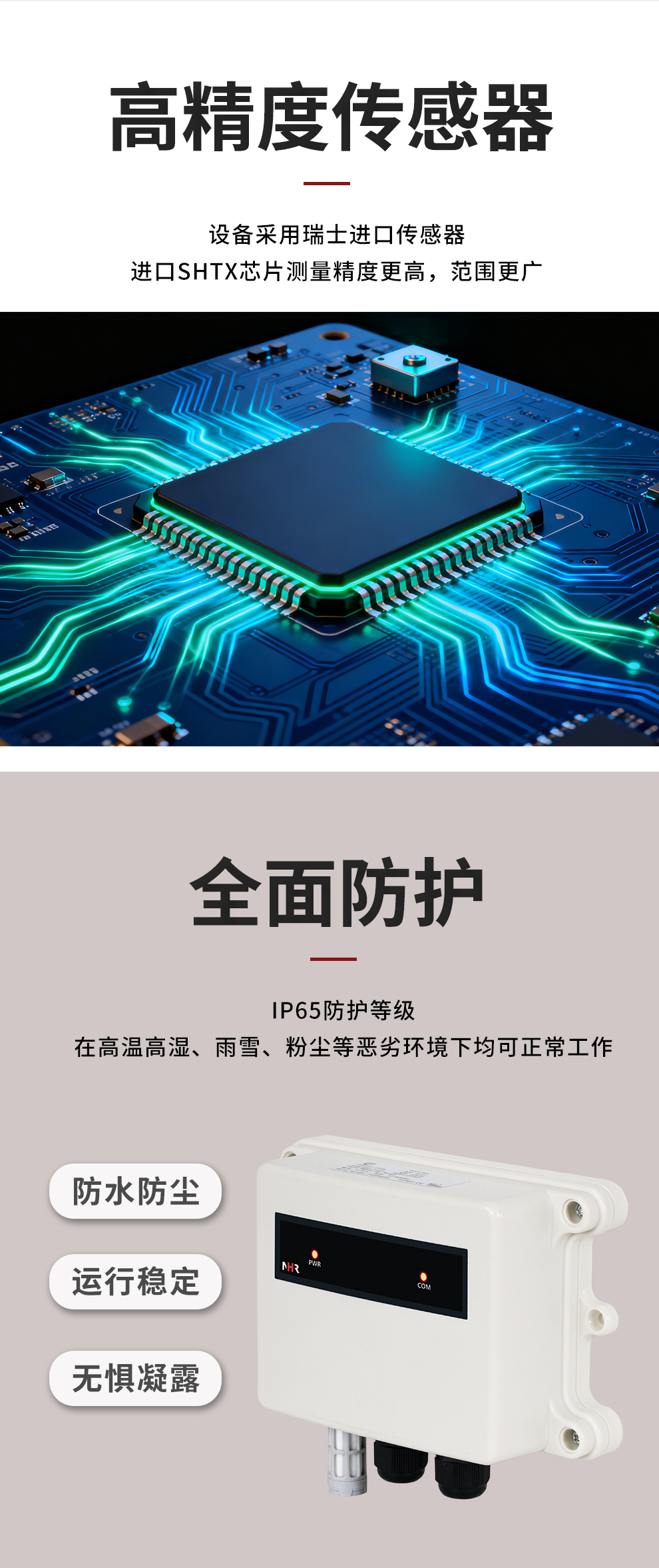 虹潤公司是專業(yè)生產(chǎn)環(huán)境監(jiān)測儀表的國家專精特新“小巨人”企業(yè)。生產(chǎn)的一體式溫濕度變送器,具有溫度、濕度、露點(diǎn)高精準(zhǔn)的測量與變送,報(bào)警繼電器輸出,RS485/RS232通訊,IP65防護(hù)等級等特點(diǎn)。產(chǎn)品獲得一種手持式低功耗溫濕度檢測儀、大屏幕溫濕度記錄儀等2項(xiàng)國家發(fā)明專利,主持起草物聯(lián)網(wǎng)智能溫度儀表通用技術(shù)條件、冷鏈溫度記錄儀等2項(xiàng)國家標(biāo)準(zhǔn),以及通信系統(tǒng)多通道數(shù)據(jù)采集控制終端規(guī)范軍用標(biāo)準(zhǔn),以及現(xiàn)場設(shè)備集成等5項(xiàng)智能制造國家標(biāo)準(zhǔn),參與國際5G標(biāo)準(zhǔn)制定,取得溫濕度儀表等3項(xiàng)相關(guān)軟件著作權(quán)。產(chǎn)品廣泛應(yīng)用于工業(yè)現(xiàn)場、農(nóng)業(yè)大棚、倉儲物流、地下管廊、養(yǎng)殖孵化、配電機(jī)房等諸多領(lǐng)域。