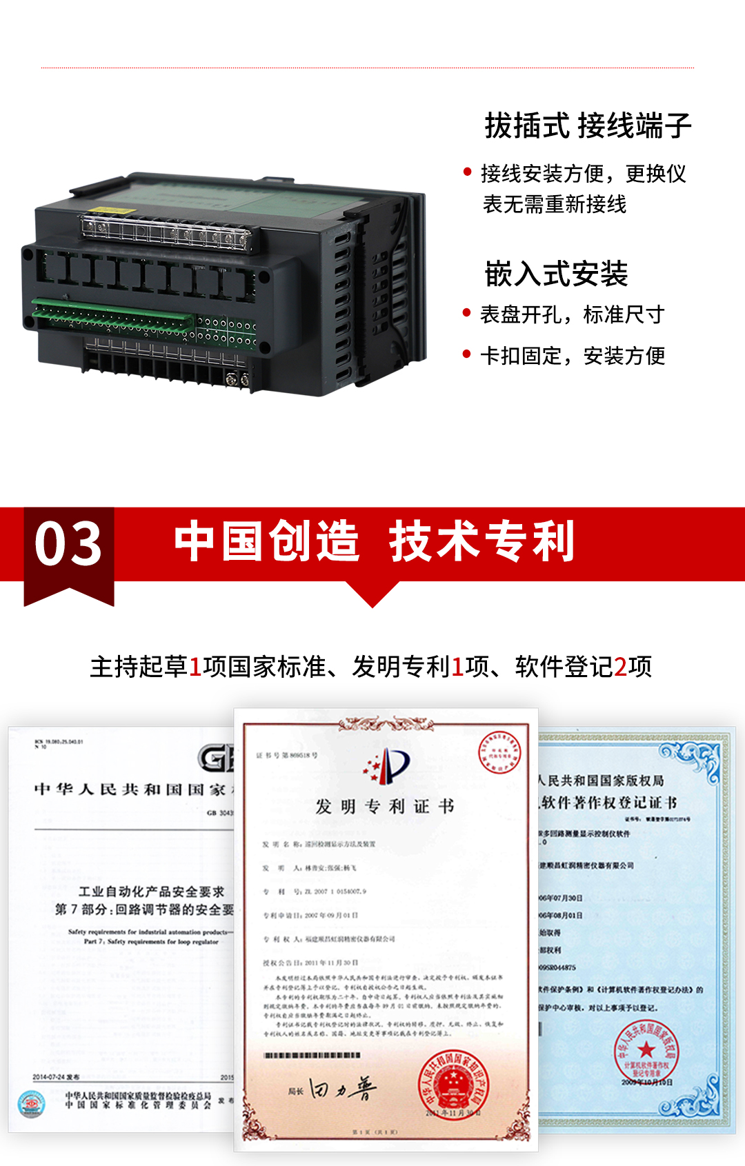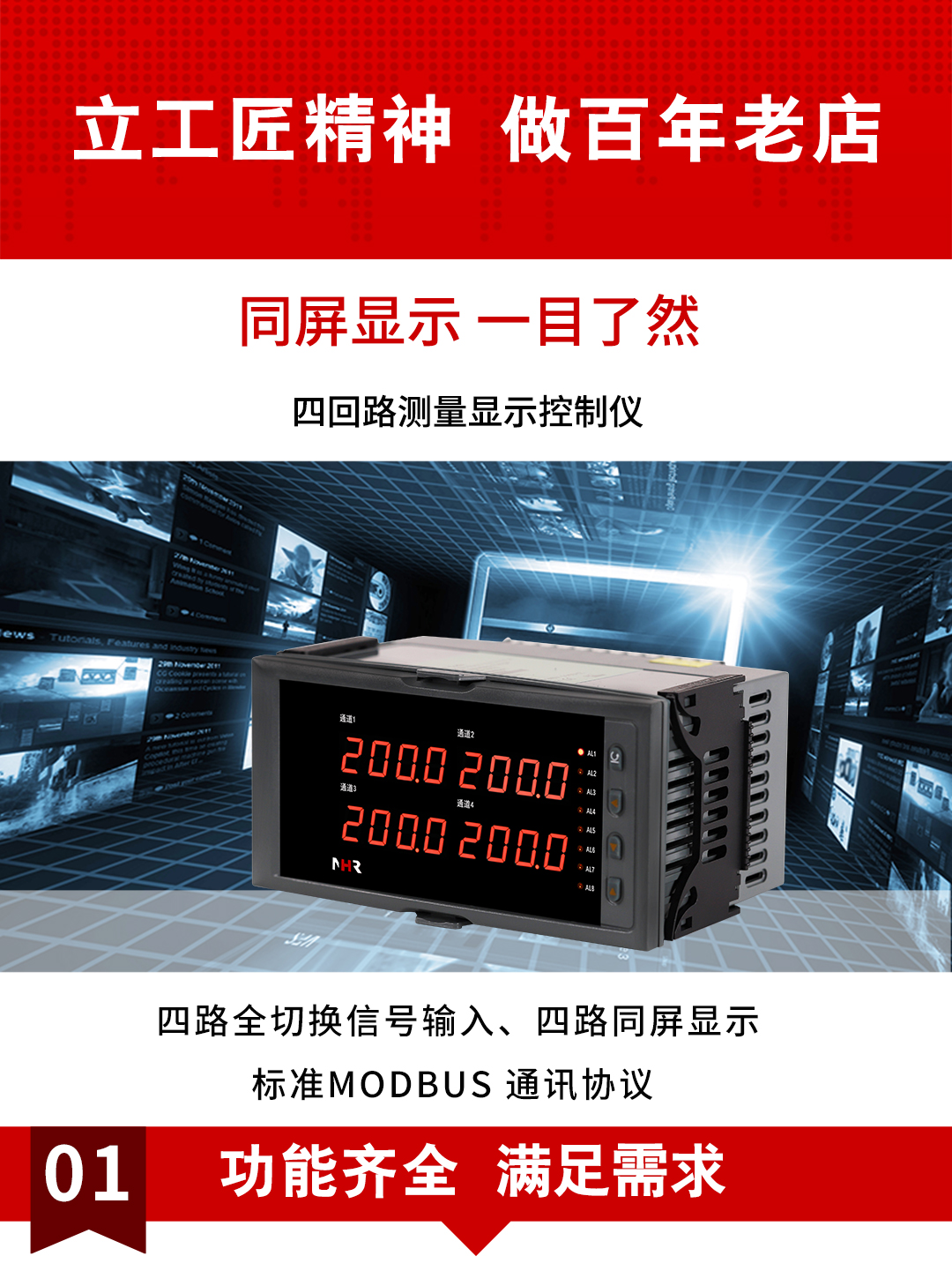 虹潤(rùn)公司是專業(yè)生產(chǎn)多路溫度巡檢儀的國(guó)家專精特新“小巨人”企業(yè),生產(chǎn)的四回路測(cè)量顯示控制儀,具有四路同屏顯示,全切換信號(hào)輸入,數(shù)學(xué)運(yùn)算功能,多種輸出類型,RS485/RS232通訊等特點(diǎn)。產(chǎn)品獲得巡回檢測(cè)顯示方法及裝置、儀表殼體等2項(xiàng)國(guó)家發(fā)明專利,主持起草工業(yè)過(guò)程控制系統(tǒng)用模擬輸入兩位或多位輸出儀表、物聯(lián)網(wǎng)智能溫度儀表通用技術(shù)條件等2項(xiàng)國(guó)家標(biāo)準(zhǔn),以及通信系統(tǒng)多通道數(shù)據(jù)采集控制終端規(guī)范軍用標(biāo)準(zhǔn),參與國(guó)際5G標(biāo)準(zhǔn)制定,取得四回路測(cè)量顯示控制儀等3項(xiàng)相關(guān)軟件著作權(quán)。產(chǎn)品廣泛應(yīng)用于電力、石化、冶金、制藥、水處理、機(jī)械配套等各種工業(yè)現(xiàn)場(chǎng)。
