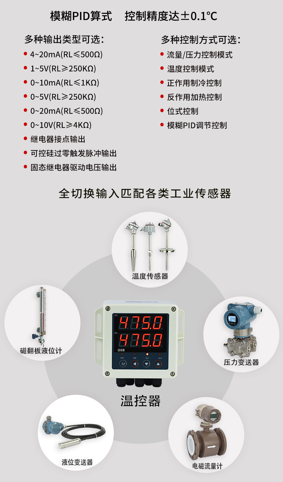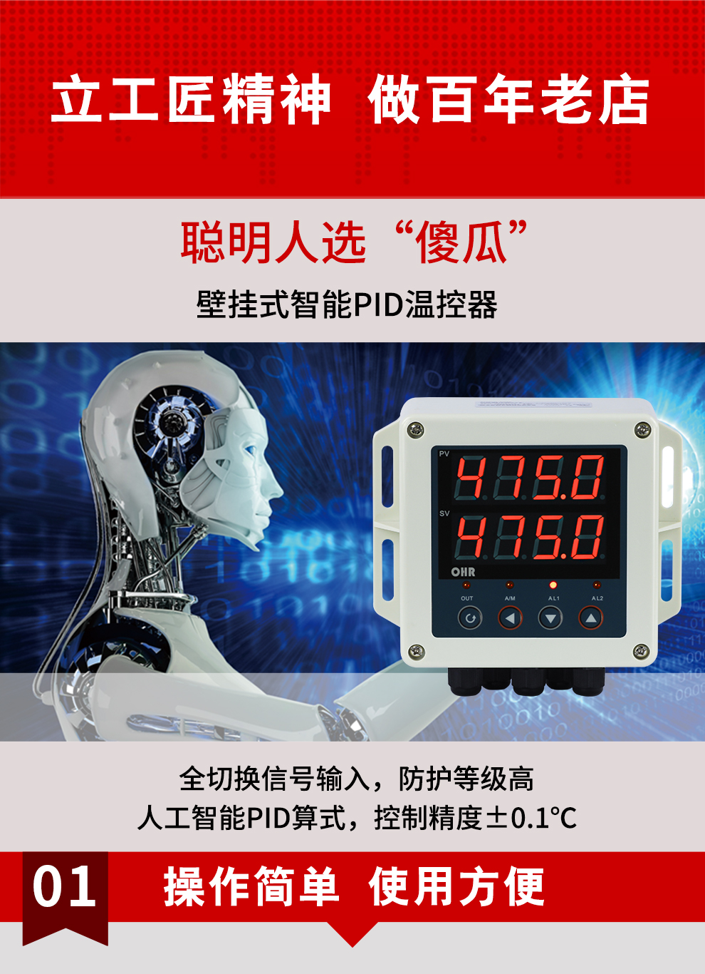 虹潤公司是專業(yè)生產溫控器的國家專精特新“小巨人”企業(yè)。生產的壁掛式PID溫控器,具有全切換信號輸入,真正人工智能算式,控制精度達士0.1°C,防護等級高,RS485通訊輸出DN等特點。產品獲得模糊PID控制儀及控制方法、人工智能調節(jié)器、智能化控制器、移相觸發(fā)控制器、閥門自動手動無擾動操作控制方法及裝置等5項國家發(fā)明專利,主持起草主持起草工業(yè)過程控制系統(tǒng)用模擬輸入兩位或多位輸出儀表、物聯(lián)網智能溫度儀表通用技術條件、工業(yè)過程測量和控制系統(tǒng)用智能調節(jié)器等3項國家標準,以及通信系統(tǒng)多通道數據采集控制終端規(guī)范軍用標準。參與國際5G標準制定,取得傻瓜式PID調節(jié)儀等3項相關軟件著作權。產品廣泛應用于電力、石化,冶金、制藥、食品等幾乎所有工業(yè)現(xiàn)場,實現(xiàn)精準控溫,保障生產安全與質量。