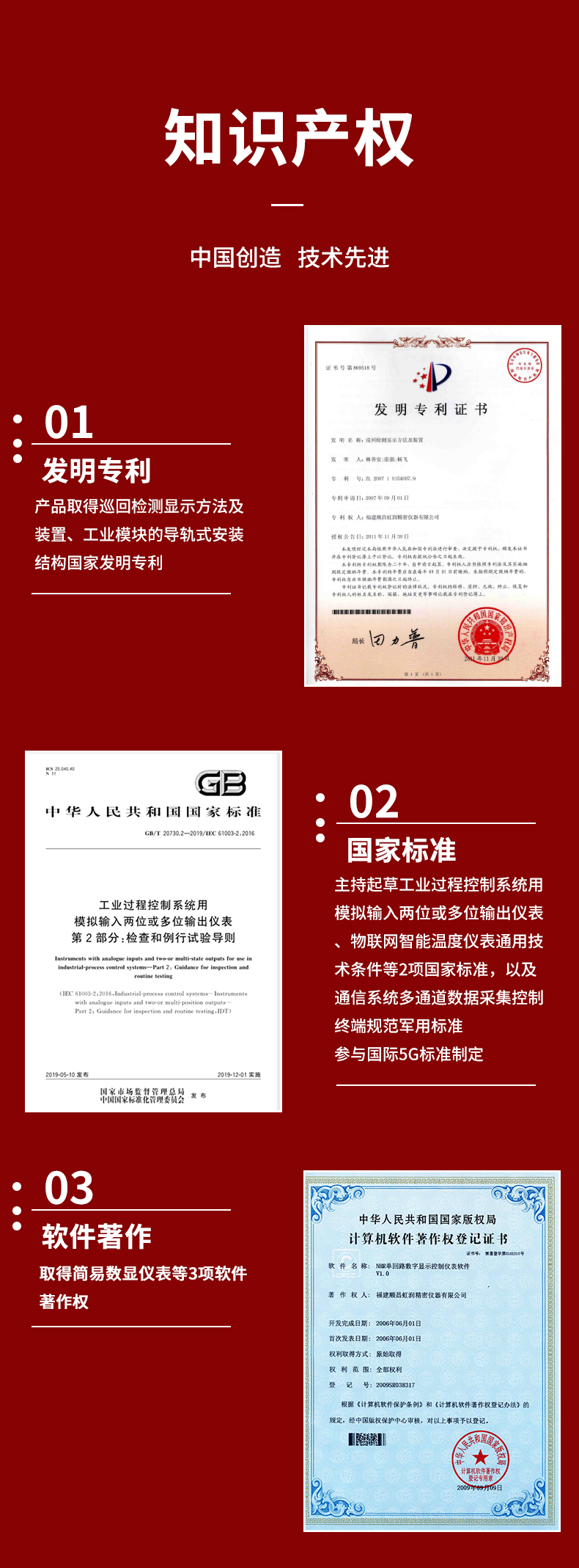 虹潤(rùn)公司是專業(yè)生產(chǎn)數(shù)顯表的國(guó)家專精特新“小巨人”企業(yè),生產(chǎn)的導(dǎo)軌式數(shù)顯儀表,具有全切換信號(hào)輸入,導(dǎo)軌壁掛共用,全隔離設(shè)計(jì),高抗干擾,變送輸出或RS485通訊等特點(diǎn)。產(chǎn)品獲得巡回檢測(cè)顯示方法及裝置、工業(yè)模塊的導(dǎo)軌式安裝結(jié)構(gòu)等2項(xiàng)國(guó)家發(fā)明專利,主持起草工業(yè)過程控制系統(tǒng)用模擬輸入兩位或多位輸出儀表、物聯(lián)網(wǎng)智能溫度儀表通用技術(shù)條件等2項(xiàng)國(guó)家標(biāo)準(zhǔn),,以及通信系統(tǒng)多通道數(shù)據(jù)采集控制終端規(guī)范軍用標(biāo)準(zhǔn),參與國(guó)際5G標(biāo)準(zhǔn)制定,取得簡(jiǎn)易數(shù)顯儀表等3項(xiàng)相關(guān)軟件著作權(quán)。產(chǎn)品廣泛應(yīng)用于電力、石化、冶金、化工、造紙、食品、輕工、制藥、熱處理、水處理、機(jī)械配套等各種工業(yè)現(xiàn)場(chǎng)。