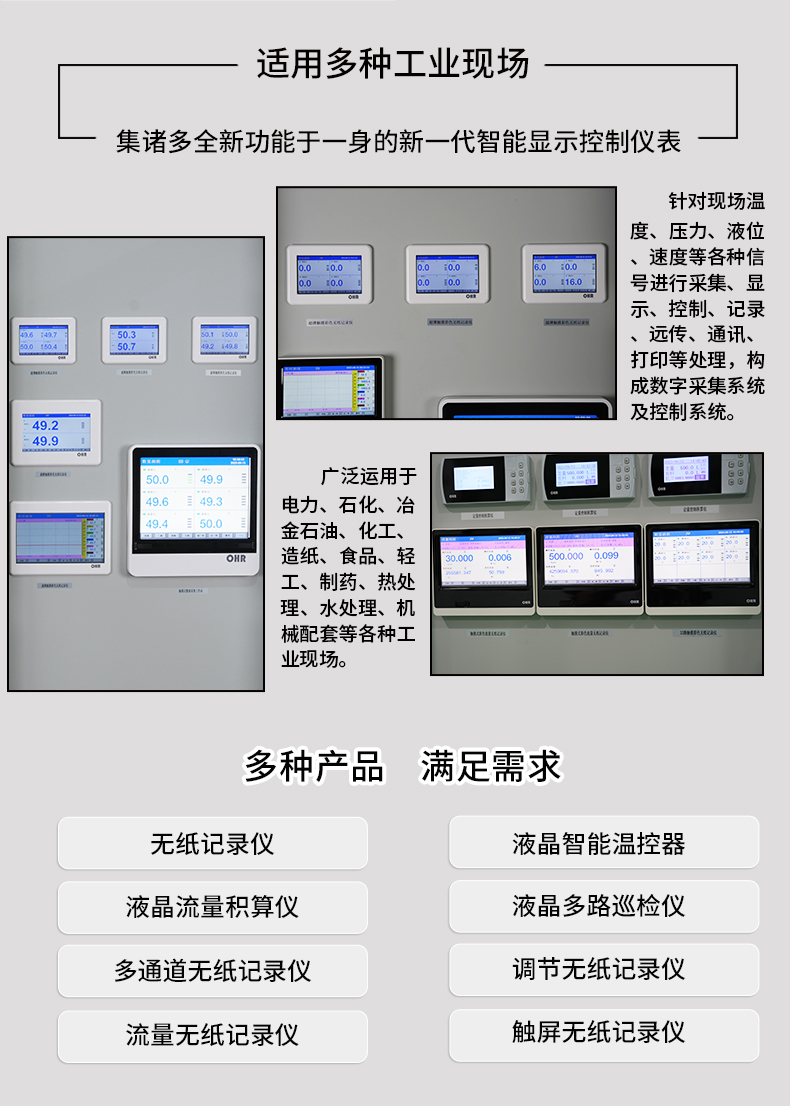 虹潤公司是專業(yè)生產無紙記錄儀的國家專精特新“小巨人”企業(yè)。生產的觸摸屏調節(jié)無紙記錄儀,具有觸摸大屏顯示,真正人工智能算式,無需人工整定參數(shù),控制精度達士0.1°C,數(shù)據(jù)記錄與轉存, RS485/以太網(wǎng)通訊,5/7/9英寸可選等特點。產品獲得智能化控制器、人工智能調節(jié)器及調節(jié)方法、模糊PID控制儀及控制方法、平板無紙記錄儀、巡回檢測顯示方法及裝置等5項國家發(fā)明專利,主持起草物聯(lián)網(wǎng)智能記錄儀表通用技術條件、物聯(lián)網(wǎng)智能溫度儀表通用技術條件、工業(yè)過程測量和控制系統(tǒng)用智能調節(jié)器等3項國家標準,通信系統(tǒng)多通道數(shù)據(jù)采集控制終端規(guī)范軍用標準,以及空間數(shù)據(jù)與信息數(shù)據(jù)傳輸系統(tǒng)等2項航天標準,參與國際5G標準制定,取得觸摸屏彩色調節(jié)無紙記錄儀等3項相關軟件著作權。產品廣泛應用于電力、石化、冶金、化工、食品、制藥、熱處理、水處理、機械配套等諸多領域。