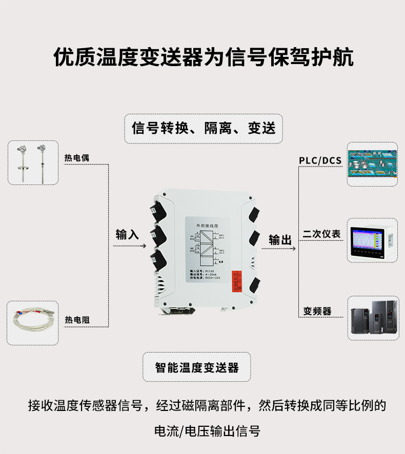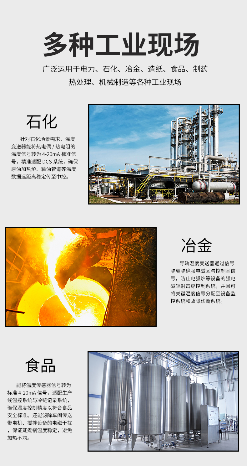 虹潤(rùn)公司是專(zhuān)業(yè)生產(chǎn)溫度變送器的國(guó)家專(zhuān)精特新“小巨人”企業(yè)。生產(chǎn)的溫度變送器,具有采用磁隔離技術(shù),配套編程器可修改參數(shù),抗干擾能力強(qiáng),穩(wěn)定性好,帶RS485或HART通訊等特點(diǎn)。該產(chǎn)品不僅通過(guò)HART基金會(huì)認(rèn)證、德國(guó)萊茵 CE 認(rèn)證與 SIL 功能安全認(rèn)證,還獲得具備減震抗干擾能力的溫度變送器、信號(hào)隔離器、一種二端子模塊、無(wú)源信號(hào)隔離器等4項(xiàng)國(guó)家發(fā)明專(zhuān)利,主持起草物聯(lián)網(wǎng)智能溫度儀表、現(xiàn)場(chǎng)設(shè)備工具(FDT)接口規(guī)范、工業(yè)過(guò)程測(cè)量和控制系統(tǒng)用溫度變送器等3項(xiàng)國(guó)家標(biāo)準(zhǔn),以及通信系統(tǒng)多通道數(shù)據(jù)采集控制終端規(guī)范軍用標(biāo)準(zhǔn),參與國(guó)際5G標(biāo)準(zhǔn)制定,取得溫度變送器等5項(xiàng)相關(guān)軟件著作權(quán)。產(chǎn)品廣泛應(yīng)用于石油、電力、化工,冶金、制藥、紡織、橡膠制造等工業(yè)領(lǐng)域現(xiàn)場(chǎng)自動(dòng)化測(cè)溫過(guò)程。