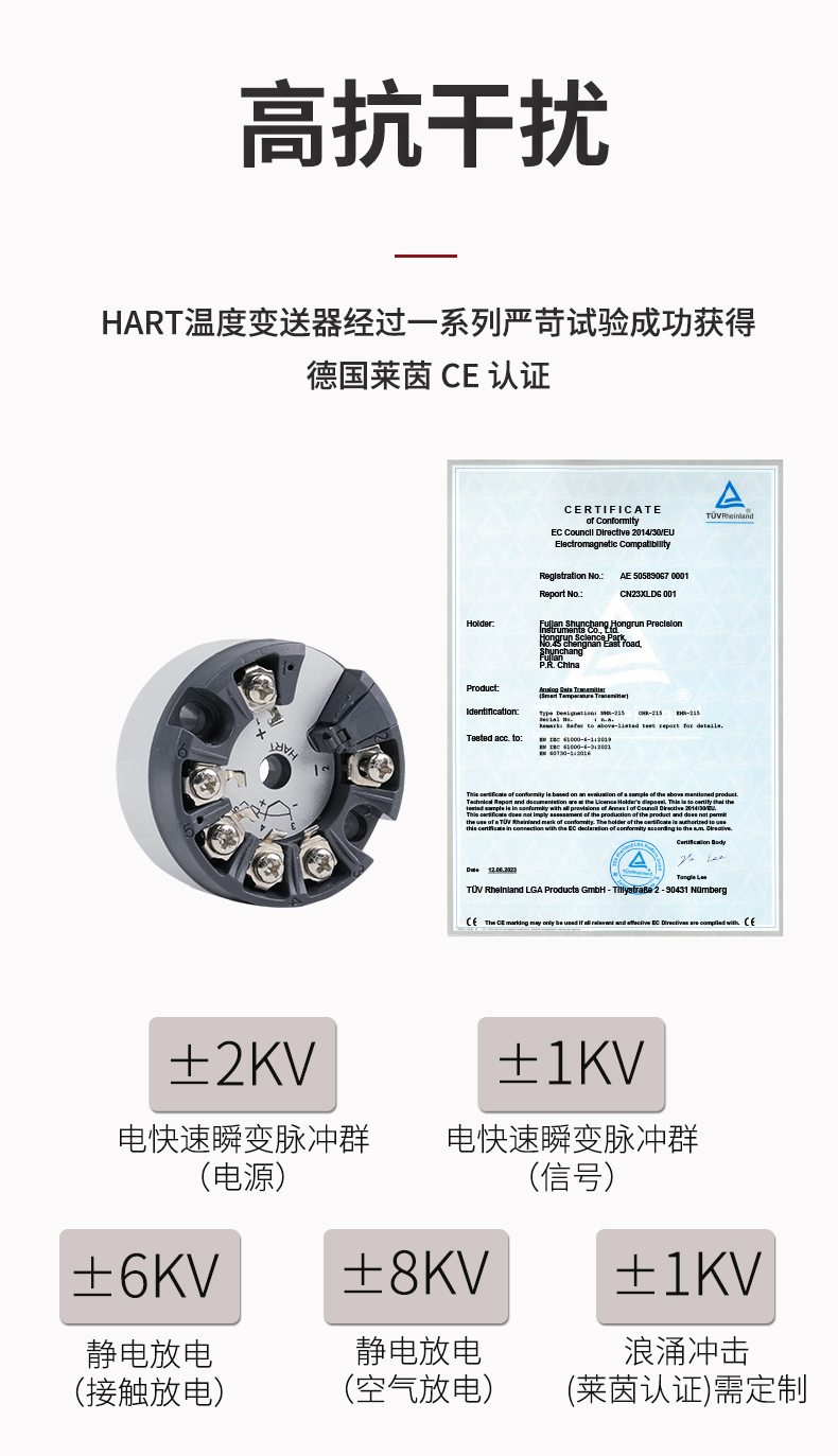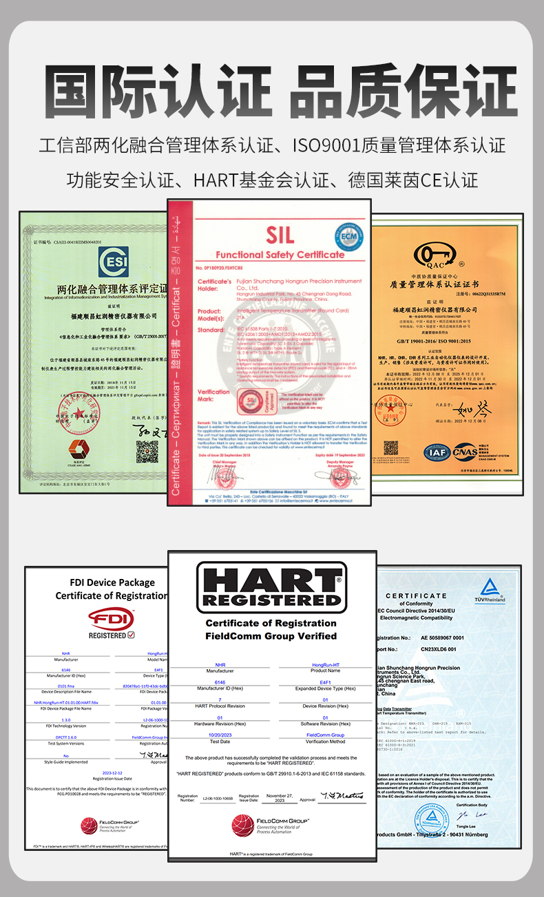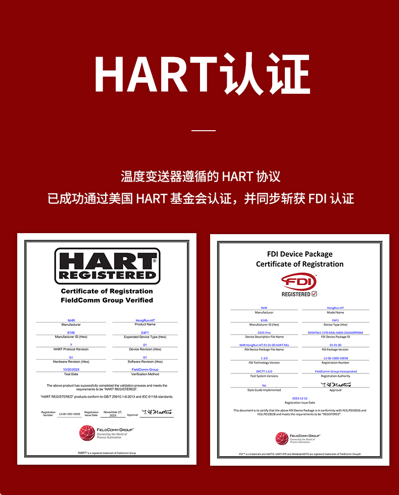 虹潤公司是專業(yè)生產(chǎn)溫度變送器的國家專精特新“小巨人”企業(yè)。生產(chǎn)的智能溫度變送器,具有適配各類溫度傳感器,精度高,通過編程線修改輸入信號(hào)類型及量程,高抗干擾,HART或485通訊等特點(diǎn)。該產(chǎn)品不僅通過HART基金會(huì)認(rèn)證、德國萊茵 CE 認(rèn)證與 SIL 功能安全認(rèn)證,還獲得具備減震抗干擾能力的溫度變送器、信號(hào)隔離器、一種二端子模塊、無源信號(hào)隔離器等4項(xiàng)國家發(fā)明專利,主持起草物聯(lián)網(wǎng)智能溫度儀表、現(xiàn)場設(shè)備工具(FDT)接口規(guī)范、工業(yè)過程測(cè)量和控制系統(tǒng)用溫度變送器等3項(xiàng)國家標(biāo)準(zhǔn),以及通信系統(tǒng)多通道數(shù)據(jù)采集控制終端規(guī)范軍用標(biāo)準(zhǔn),參與國際5G標(biāo)準(zhǔn)制定,取得HART溫度變送器、智能溫度變送器等3項(xiàng)相關(guān)軟件著作權(quán)。產(chǎn)品廣泛應(yīng)用于石油、化工、電力、冶金、制藥、食品、水處理等各種工業(yè)領(lǐng)域。