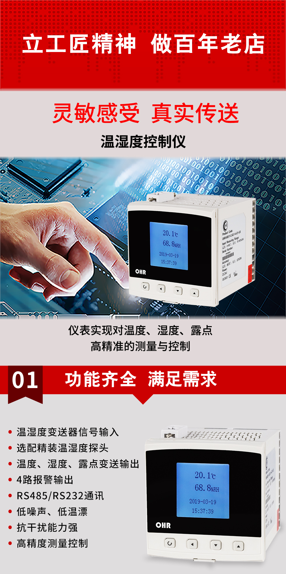 OHR-WS10系列溫濕度控制儀以先進的32位ARM處理器為核心,采用進口高性能溫濕度傳感器,可同時對被測環(huán)境的溫度、濕度進行測量和控制,并可通過溫、濕度計算出露點。它具有精度高、穩(wěn)定性強、響應(yīng)速度快等特點,適用于通訊機房、辦公室、醫(yī)院、檔案館、博物館、賓館、樓宇自控等場所的溫濕度測量。