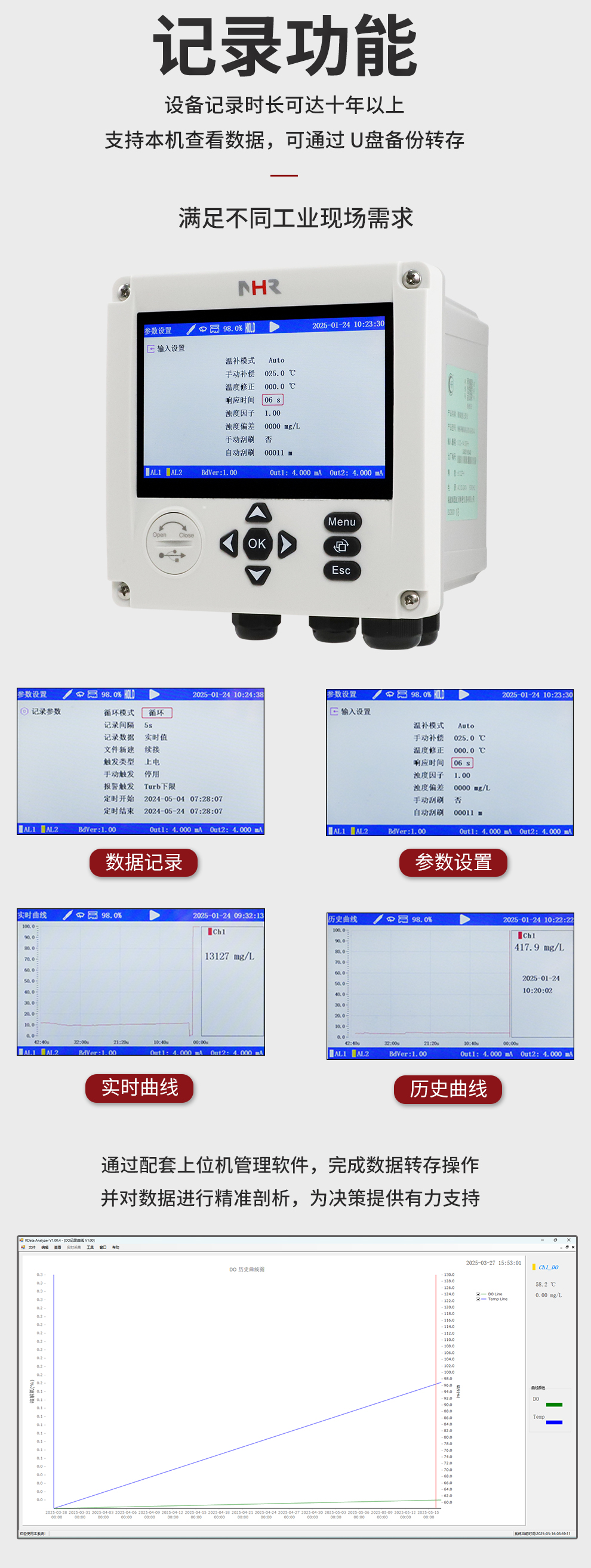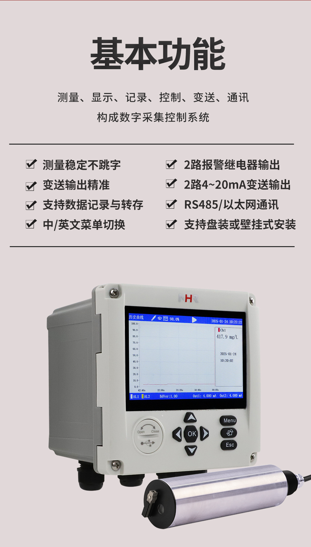 虹潤公司是專業(yè)生產(chǎn)水質(zhì)分析儀的國家專精特新“小巨人”企業(yè)。生產(chǎn)的濁度/污泥記錄儀,具有彩色大屏顯示,測量精準(zhǔn)穩(wěn)定不跳字,數(shù)據(jù)記錄與轉(zhuǎn)存,RS485/以太網(wǎng)通訊,配套上位機(jī)管理軟件等特點(diǎn)。產(chǎn)品獲得一種平板無紙記錄儀、智能化控制器等2項(xiàng)國家發(fā)明專利;主持起草物聯(lián)網(wǎng)智能記錄儀表通用技術(shù)條件、現(xiàn)場設(shè)備工具(FDT)接口規(guī)范.、過程分析技術(shù)系統(tǒng)等3項(xiàng)國家標(biāo)準(zhǔn),以及通信系統(tǒng)多通道數(shù)據(jù)采集控制終端規(guī)范軍用標(biāo)準(zhǔn),參與國際5G標(biāo)準(zhǔn)制定;取得濁度、污泥濃度無紙記錄儀等3項(xiàng)相關(guān)軟件著作權(quán)。產(chǎn)品廣泛應(yīng)用于市政供水、污水處理、食品、制藥、造紙、石化、冶金、水處養(yǎng)殖等諸多領(lǐng)域。