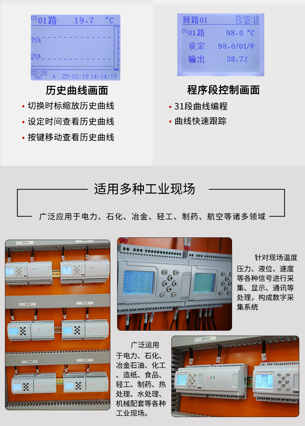 虹潤公司是專業(yè)生產(chǎn)溫控器的國家專精特新“小巨人”企業(yè)。生產(chǎn)的溫度控制器,具有4路或8路PID控制,真正人工智能算式,無需人工整定參數(shù),控制精度達(dá)士0.1°C,數(shù)據(jù)記錄與轉(zhuǎn)存等特點(diǎn)。產(chǎn)品獲得智能化控制器、人工智能調(diào)節(jié)器及調(diào)節(jié)方法、模糊PID控制儀及控制方法、一種平板無紙記錄儀、巡回檢測顯示方法及裝置等5項(xiàng)國家發(fā)明專利,主持起草物聯(lián)網(wǎng)智能記錄儀表、物聯(lián)網(wǎng)智能溫度儀表、工業(yè)過程測量和控制系統(tǒng)用智能調(diào)節(jié)器等3項(xiàng)國家標(biāo)準(zhǔn),參與國際5G標(biāo)準(zhǔn)制定,取得液晶溫控器儀表等3項(xiàng)相關(guān)軟件著作權(quán)。產(chǎn)品廣泛應(yīng)用于電石化、工業(yè)爐、試驗(yàn)設(shè)備、注塑機(jī)械、包裝機(jī)械等需要對(duì)現(xiàn)場溫度進(jìn)行監(jiān)測控制的行業(yè)。