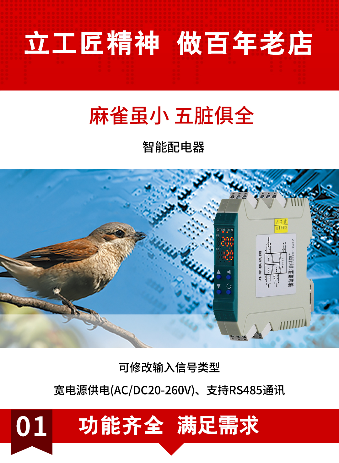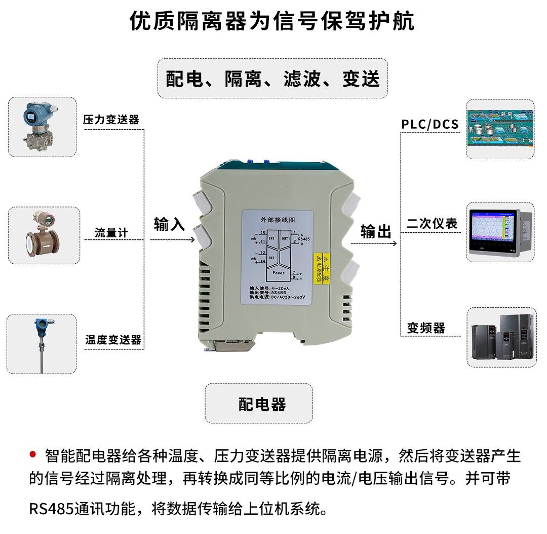 NHR-X33系列導軌式智能配電器給二、三線制變送器提供隔離的電源電壓,將變送器產(chǎn)生的直流電壓電流信號,經(jīng)本隔離器轉(zhuǎn)換成所需的輸出信號至控制系統(tǒng)。寬電源設計:20-260V交直流供電。配置高清顯示單元,通過輕觸按鍵設置每個通道的參數(shù)及每個通道之間的切換。