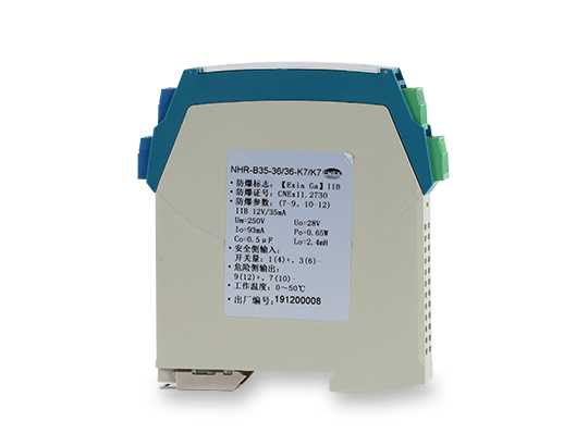NHR-B35系列12V驅(qū)動,開關(guān)量輸出操作端隔離柵將安全區(qū)的電源通過開關(guān)控制,驅(qū)動危險區(qū)的現(xiàn)場本安設(shè)備,它允許控制開關(guān)直接連接到24V供電回路的任一端。本產(chǎn)品適用于驅(qū)動如電磁閥、聲光報警等本安設(shè)備。