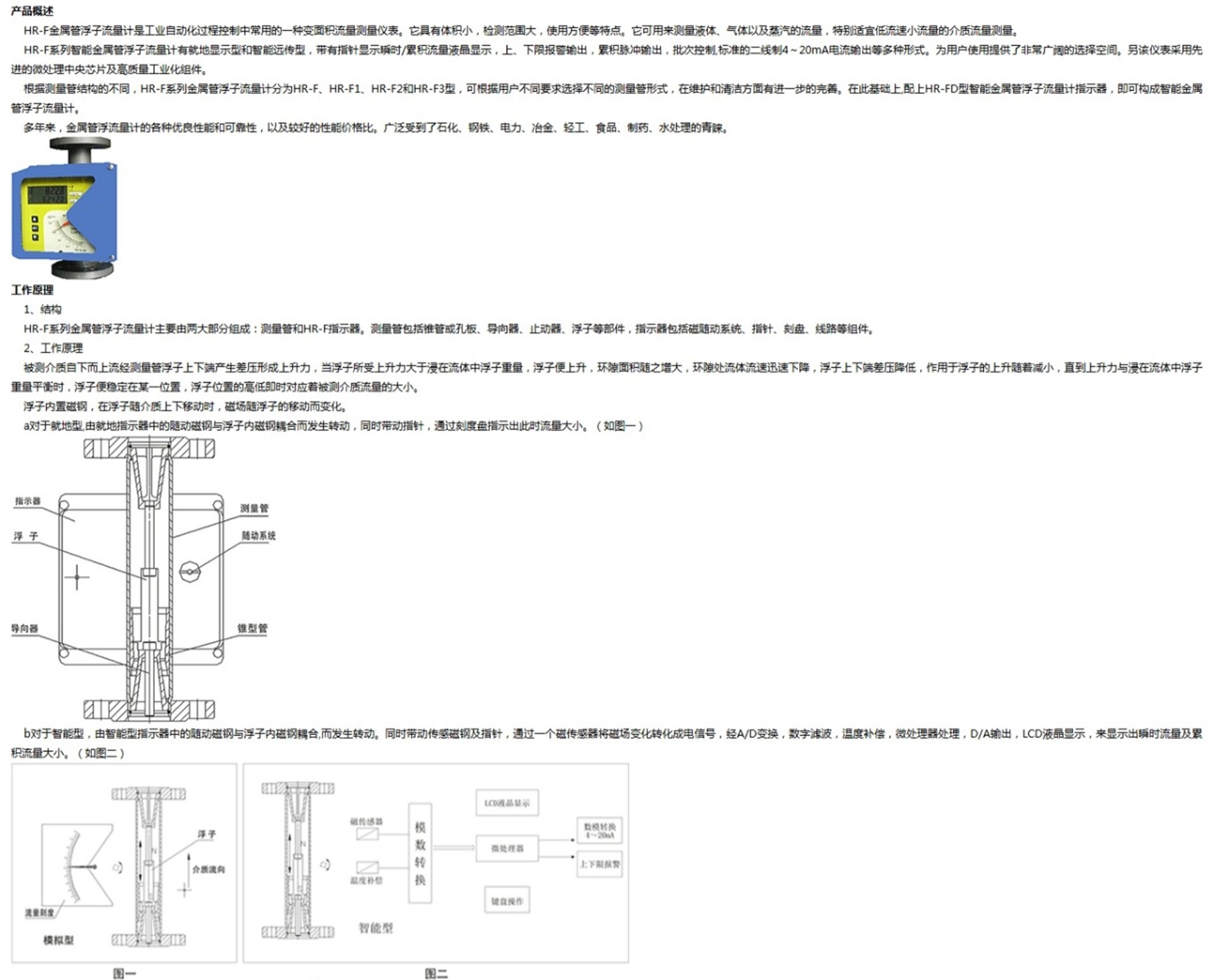 HR-F金屬管浮子流量計(jì)是工業(yè)自動(dòng)化過程控制中常用的一種變面積流量測量儀表。它具有體積小,檢測范圍大,使用方便等特點(diǎn)。它可用來測量液體、氣體以及蒸汽的流量,特別適宜低流速小流量的介質(zhì)流量測量。